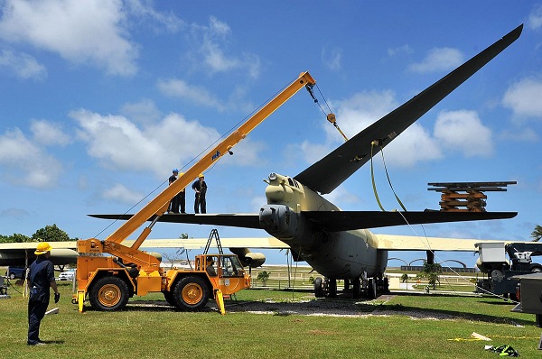 Unlike naval aircraft with wings that fold to fit in the limited space on board aircraft carriers, the fielding fin is not a self-contained system — an external crane is needed to lay it over and raise it back up again.