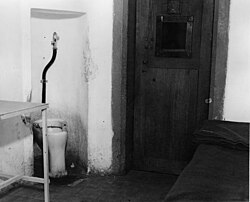 The toilets were in small alcoves, just to the side of the cell. When prisoners sat on the toilet, their lower legs and feet were visible through from the cell door.