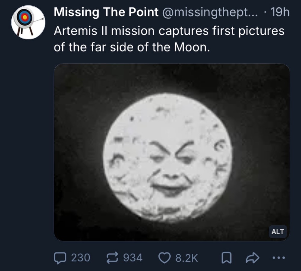 Now….. ummm….. They’re going to the far side of the moon to take some piccies.Now…. it’s a full moon right now which means the Earth side of the moon is fully lit. That means the “far side” is….. well…. dark.