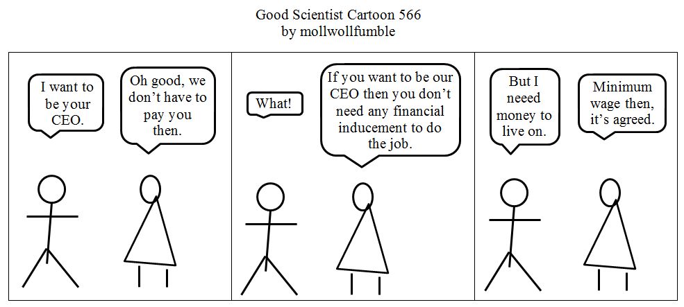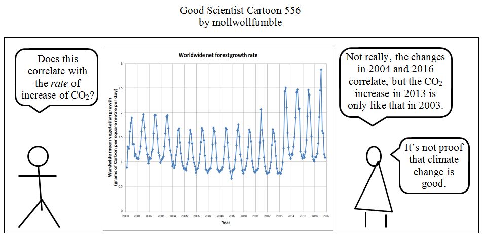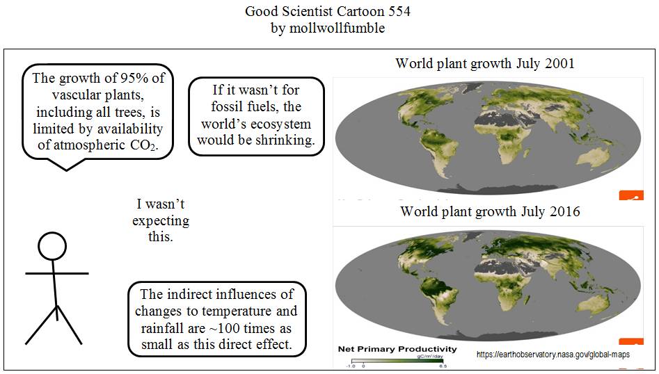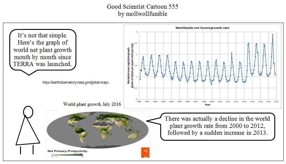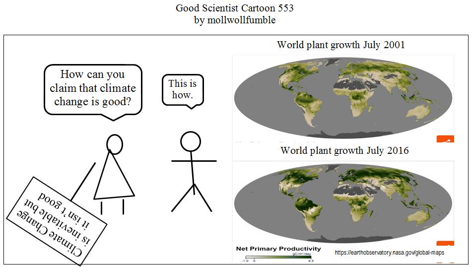 In this cartoon strip the man-like character (animus) thinks anthropogenic CO2 is good and the woman-like character (anima) thinks it is bad, so read all four strips 553 to 556 before commenting on any of them – OK.