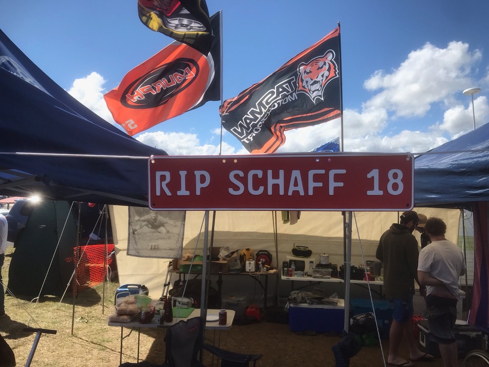 One of the Armidale mob who fairly regularly went to Bathurst died earlier this year (circumstances unclear). I went there twice with Jonny as part of the mob (once camping on the Mountain, once in the Paddock). Here’s Rick’s tribute attached to the annual campsite in the paddock.