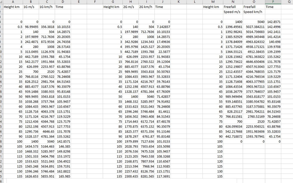 A FWIW a rough spreadsheet on 1G and 2G accelerations to get up into official space. It’s not that difficult – A 1G acceleration for about two minutes is enough.