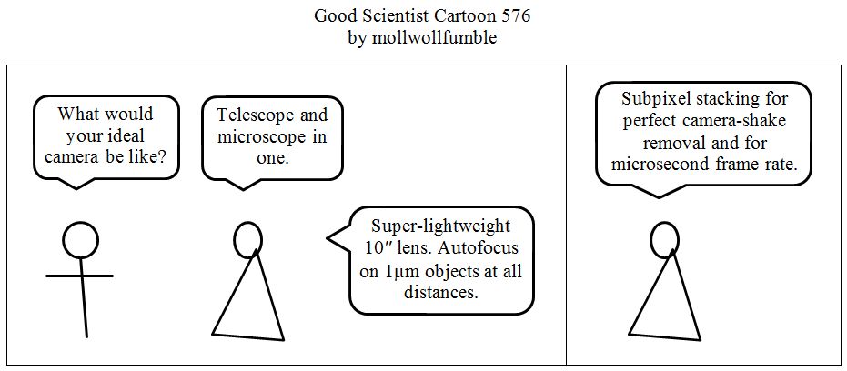 > How many models of “ideal camera” still remains an open question. Is a telescope the same camera as a microscope as a slo-mo?
