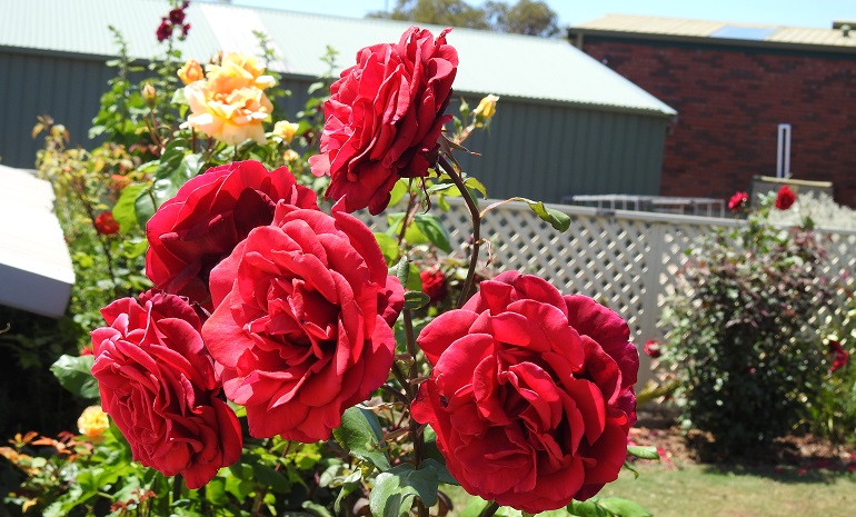 My front fence roses. I really should have taken a picture last week as they are just slightly off now.