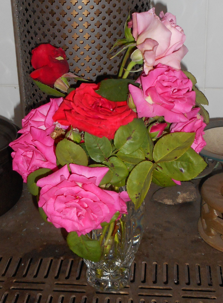 I picked roses the other day. They are getting a bit oldish looking in the vase now.