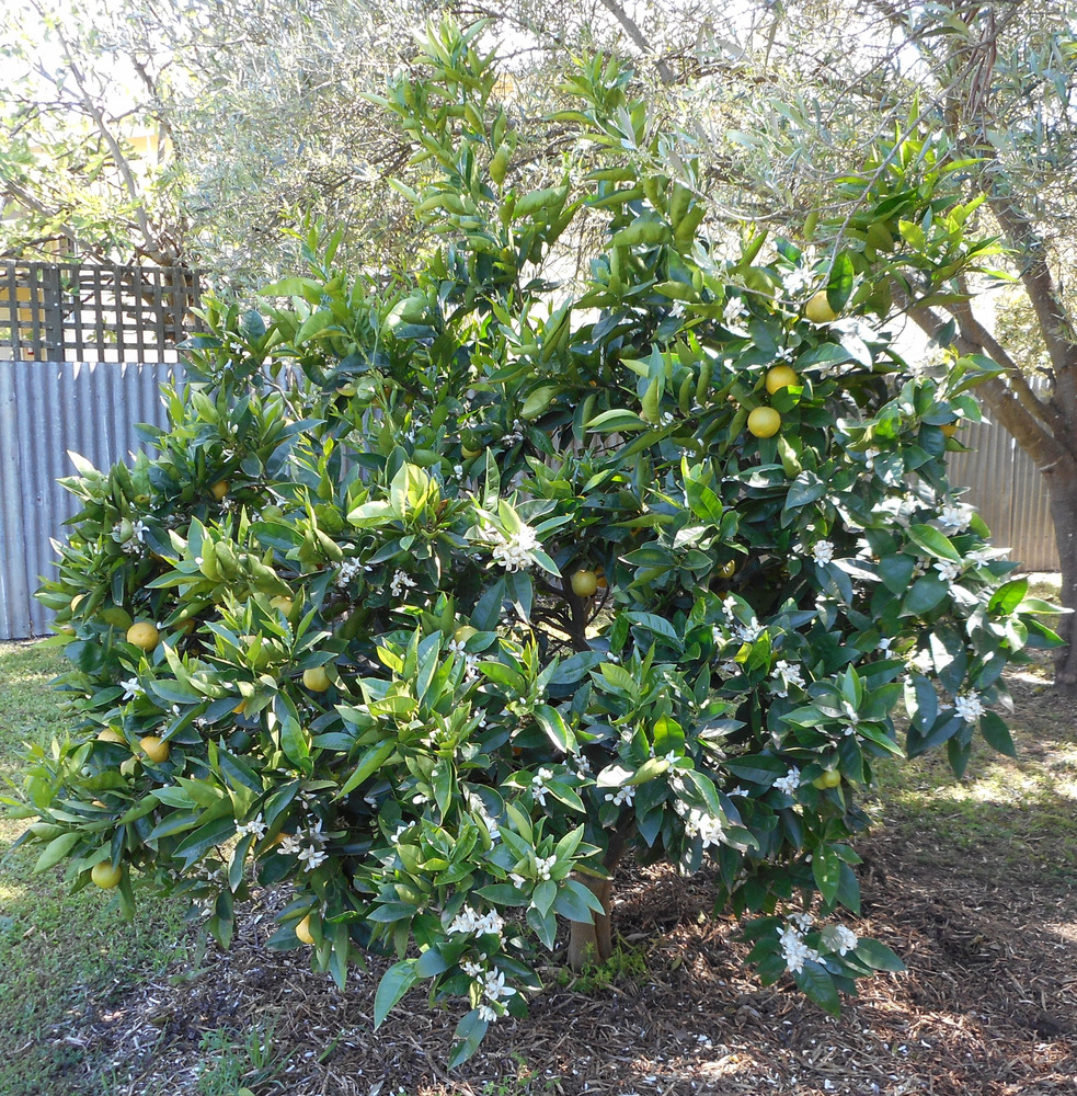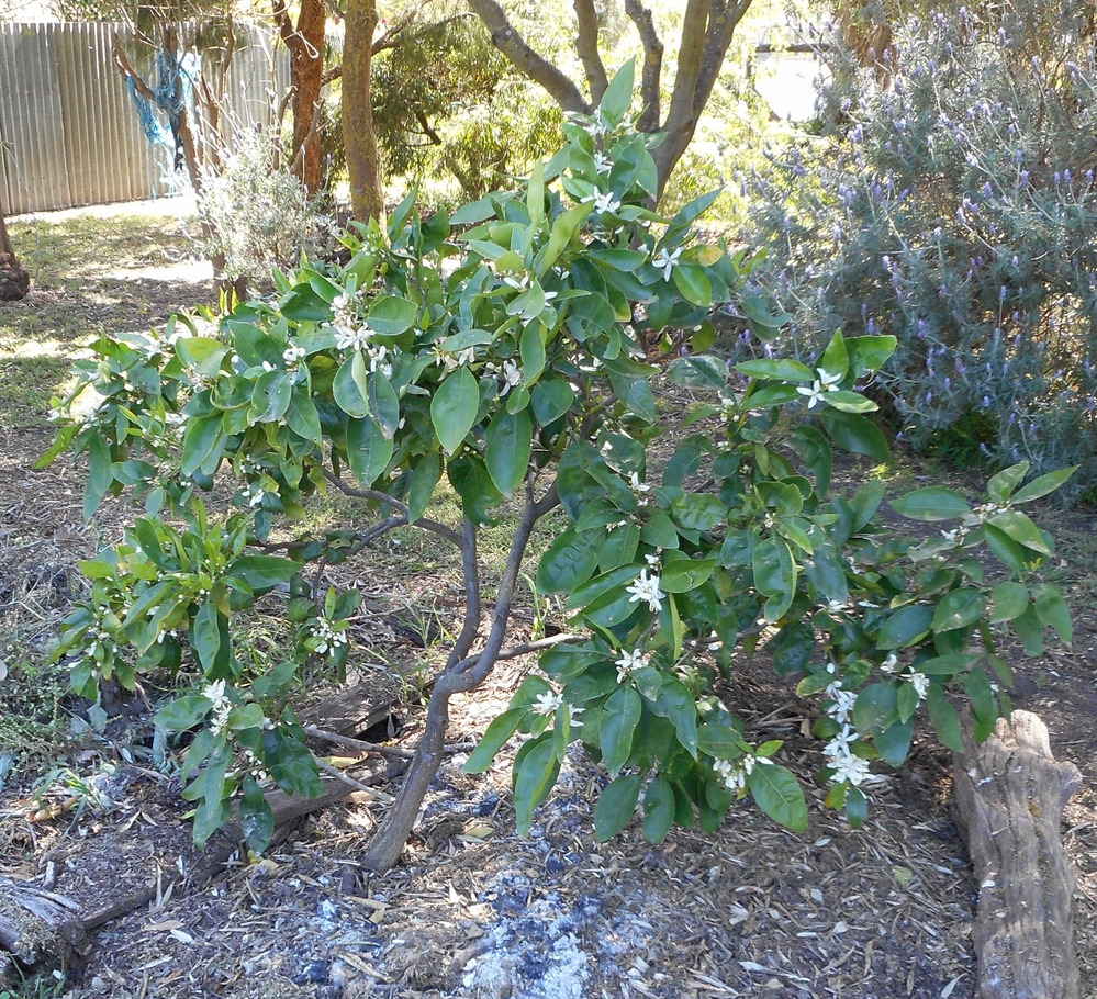 And the orange and the tangelo smell divine…in flower. The orange still has some of the last crop stored on the tree (they store better on the tree than picked) but I picked all the tangelos.