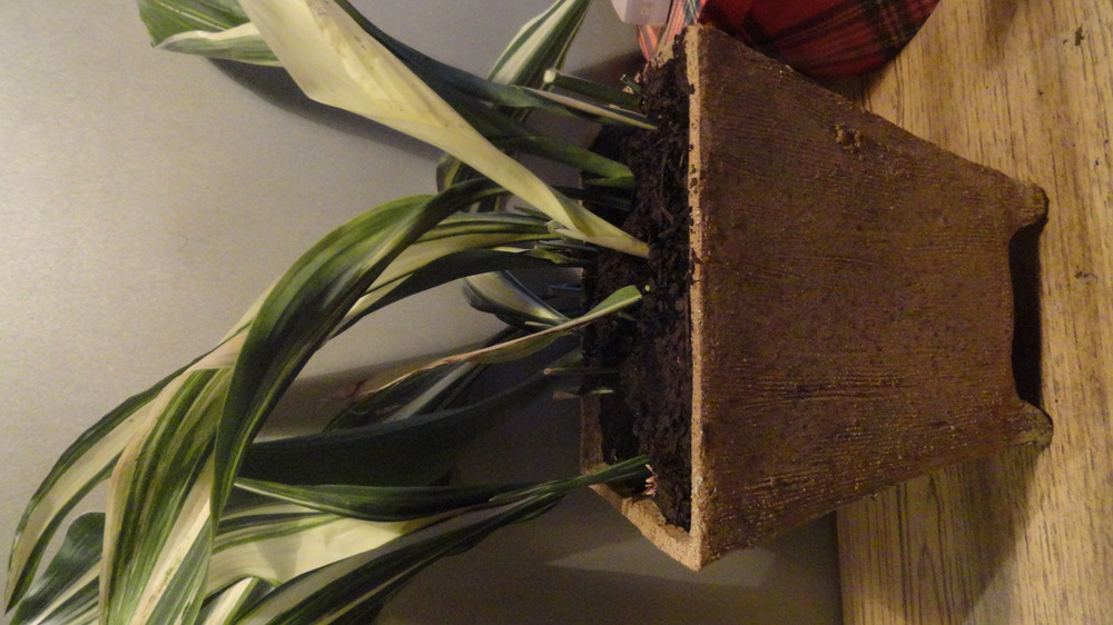 This is my variegated aspidistra. I recently reported it into a pot I made when I was making pots.