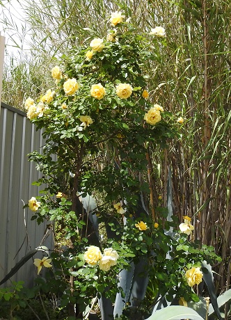 my only, full rose bush ~2.3metres high, will get a drink tomorrow, rain help bamboo too