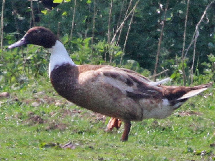 The bluish tinge of the bill may or may not suggest interbreeding with blue-billed duck. The alternative would be from the hook bill breed.