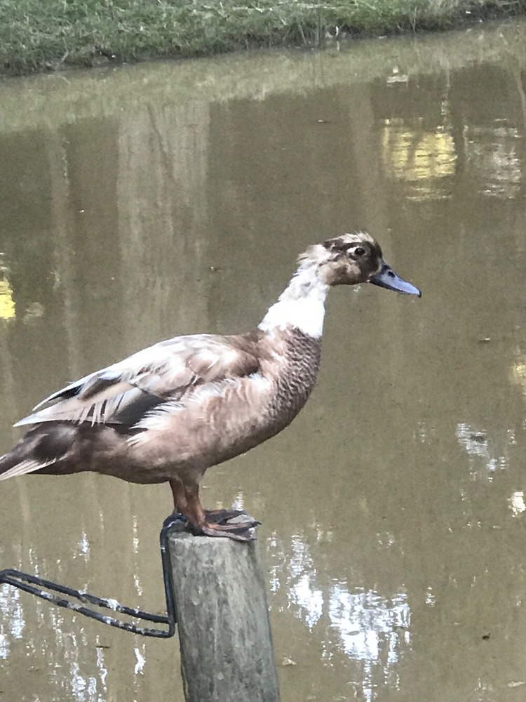 Muscovies tend to breed true, but this one has a ghosting colour around the eye that suggests Muscovy. Muscovies are even larger than domestic ducks.