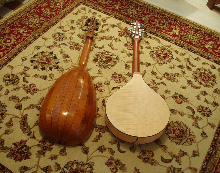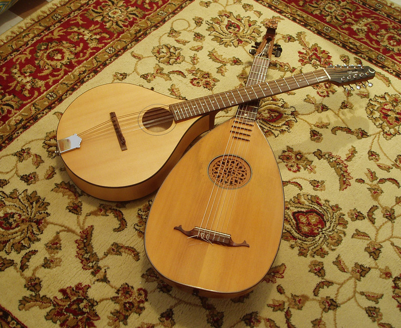 First snap, lute is on the right (actually a guitar-lute or lute-guitar, because it has six strings tuned the same as classical guitar), cittern left.