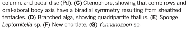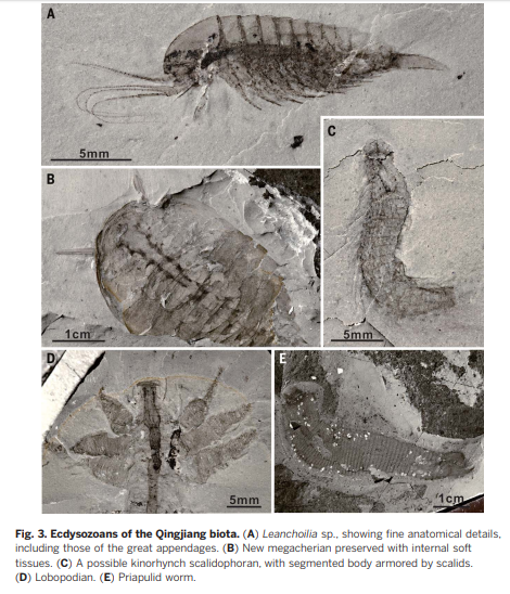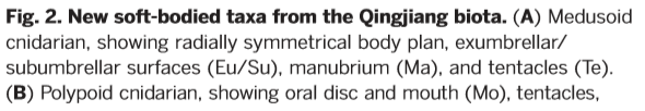 Defining aspects of the Qingjiang biota include a high abundance of cnidarians, including both medusoid and polypoid forms; new taxa resembling extant kinorhynchs; and abundant larval or juvenile forms.