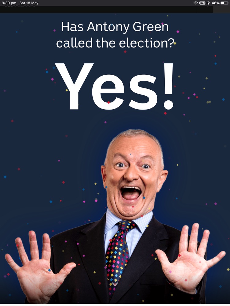 The Senate has also been finalised except for Victoria. There’ve been no surprises, it went as projected by ABC a couple of weeks back.