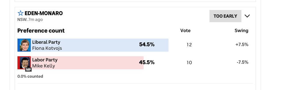 dv said:Although each division has been declared, a 2PP count has not yet been announced for all of the divisions in which the final count was not between ALP and the Coalition, so we don’t have the final 2PP yet, but it will be something in the realm of 51.5 – 48.5