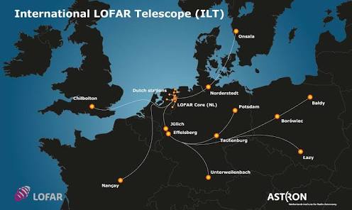 The LOFAR radio telescope in Europe took an image showing a faint source of radio waves between a pair of galaxy clusters