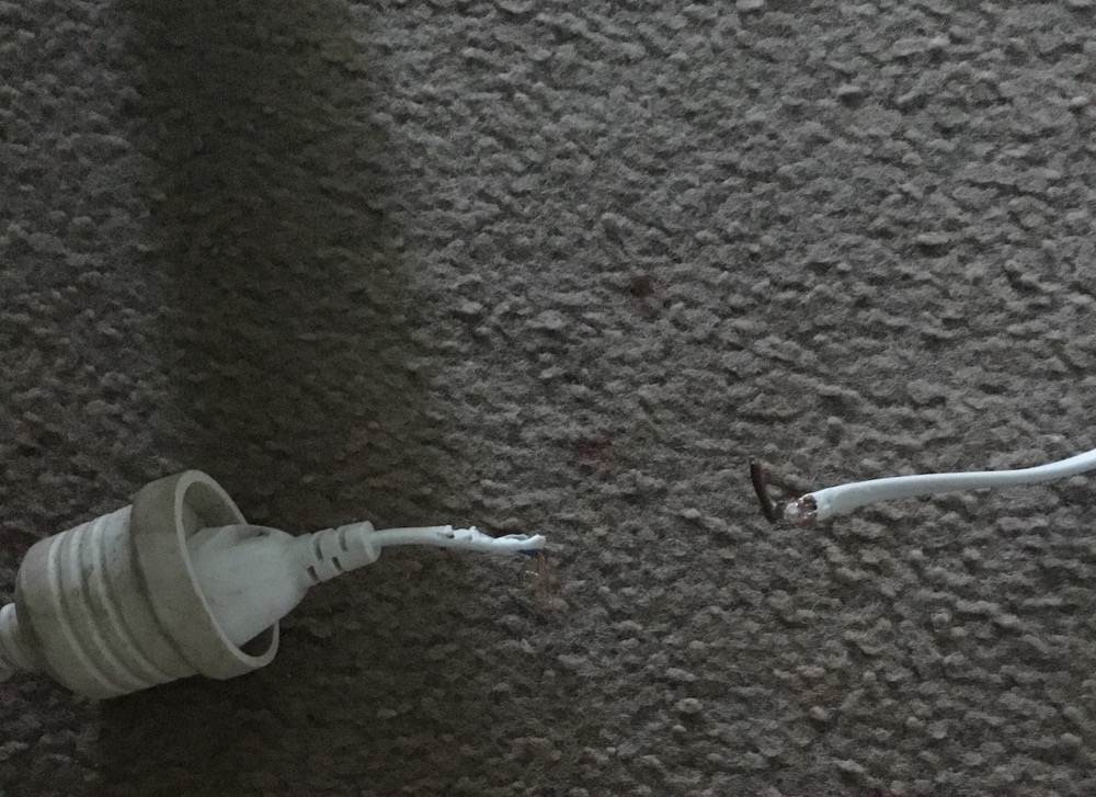 Yes one of ours many years ago did it to a Playstation controller cord, ran past nipped it and it stopped working.