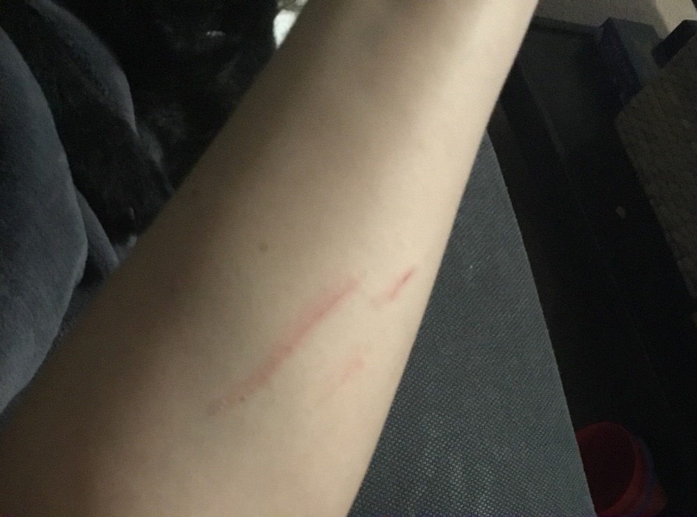 She was standing with one foot either side of the wire when the stick broke. Wire resumed its rest position.