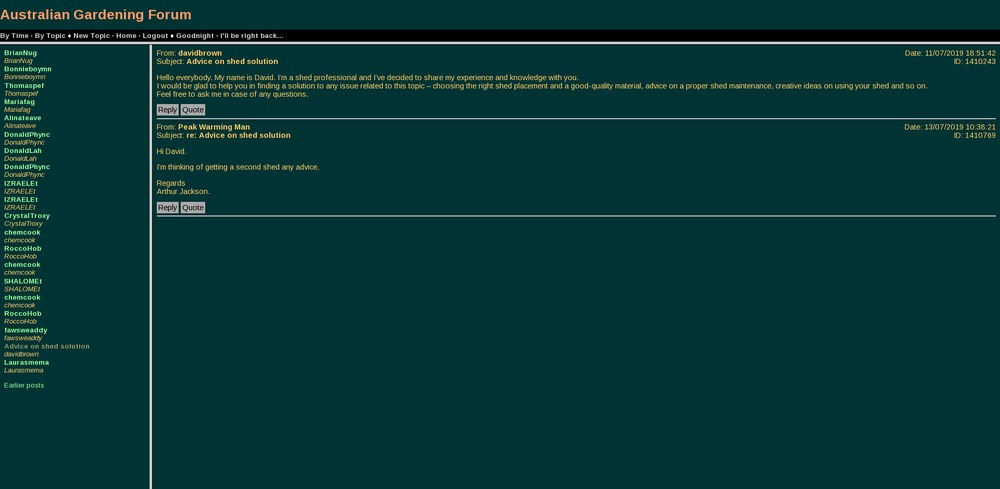 I just had a call from Hobart brother. I must be not so much on the outer now.