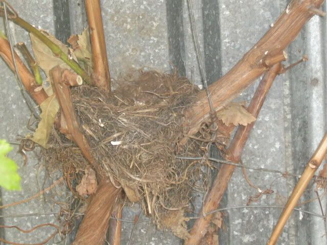blackbird nest right in the middle of my grapevine – no wonder ‘Ugly & Gruesome’ found my grapes before i did
