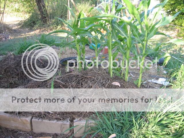 that chickpea straw is stemmy like i thought. still the good thing is long term – by this time next year that will all be luvly composty stuff. your corn is well advanced altho’ next time plant more rows.