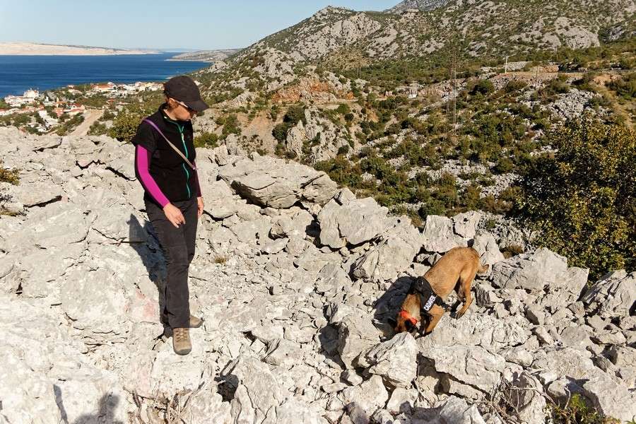 > To test the dogs, Glavaš had them sniff around an area where they she had excavated three grave sites the year before. The human remains had been removed, and due to weathering, it was no longer apparent where the excavations had taken place. Two dogs, working independently, easily located all three spots.