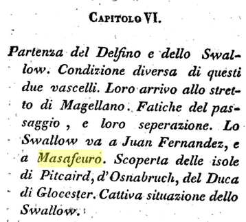 10 May 1767, Juan Fernando (I bet that’s Juan Fernandez Islands, 670 km off the coast of Chile, Latitude 33˚S)