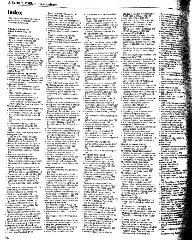 Page 43. “Within 30 years they had wiped out virtually all the Tasmanian Aborigines”. Yes, see how much better it is to use emotionally neutral words like these.