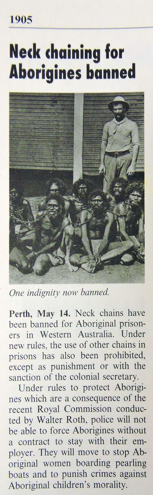 Roth says “In English prisons, chains are only used in offences: assaults on officers, attempts to escape, persistent insubordination and refusal to work”. In the north of WA, chains are used in prison because for example Roebourne gaol doesn’t have any walls yet. I disagree that the former is more moral than the latter.
