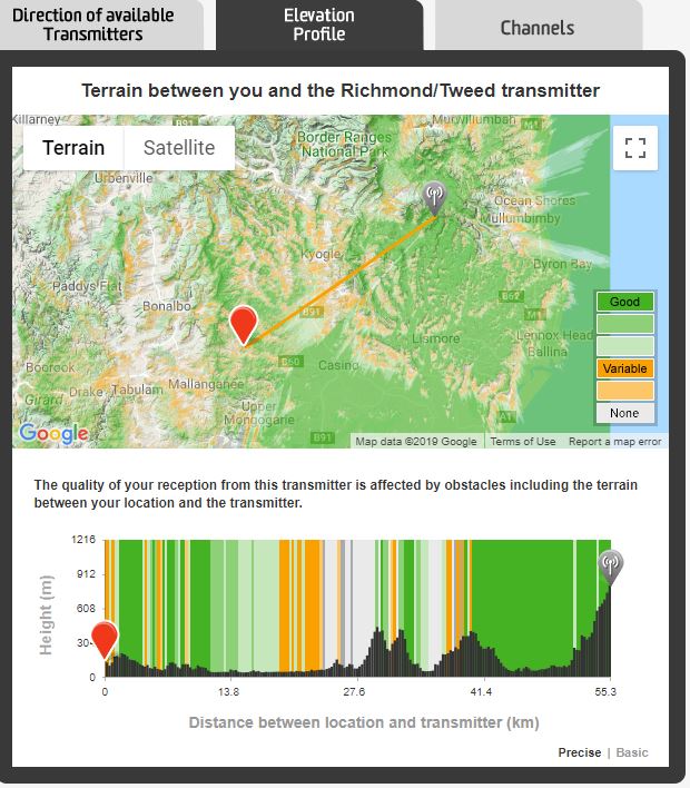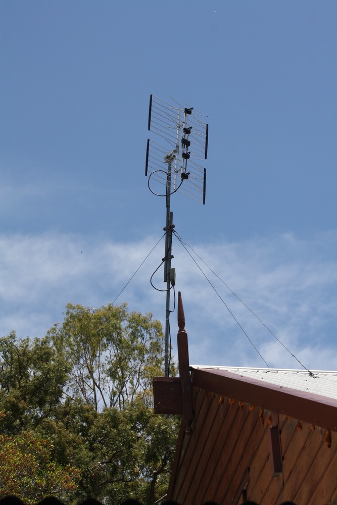 We have a TV tower right in Toowoomba, but we’re blocked from it by a ridge. So, we have to point our aerial at the one in the Bunya Mountains, 90 bloody kilometres away.