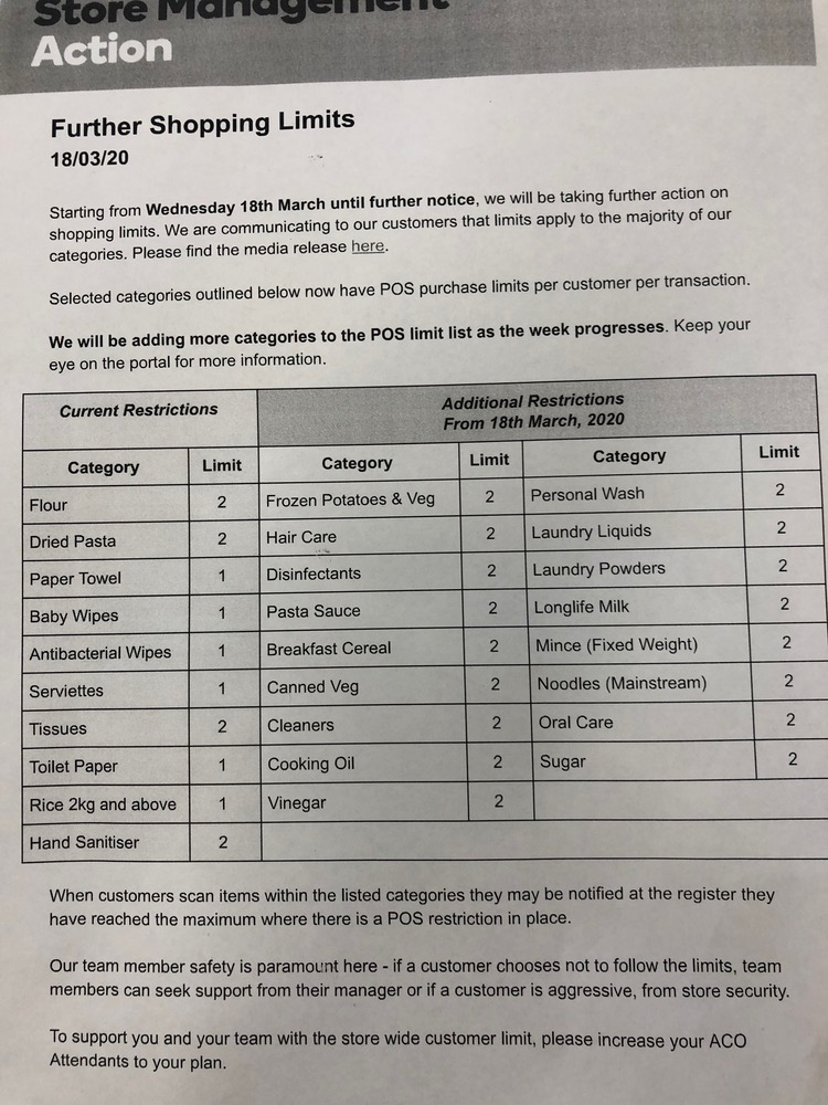 The supermarkets are constantly re stocking and no one is hoarding because we know we don’t need to. Maybe a LITTLE more than normal so you can do a weekly shop not a every second day shop.