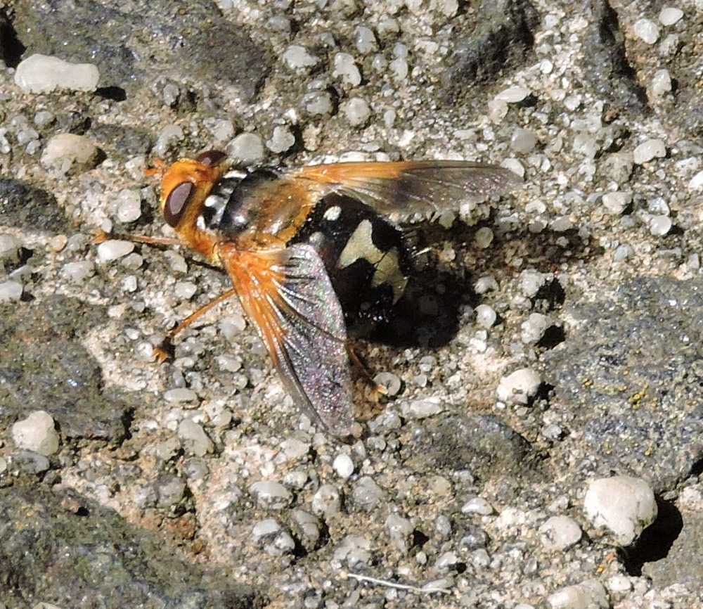 A fascinating fly turned up on Mt Dandenong near here. Big, like a blowfly but slightly longer, and brightly coloured.