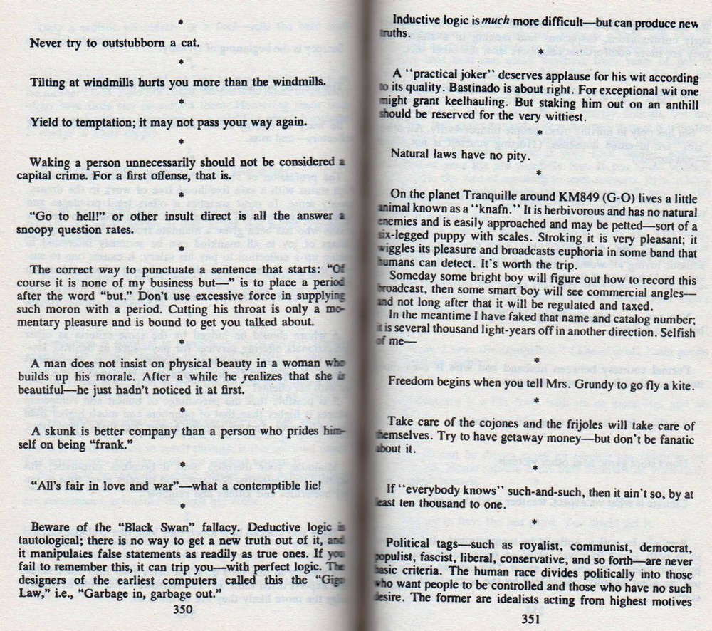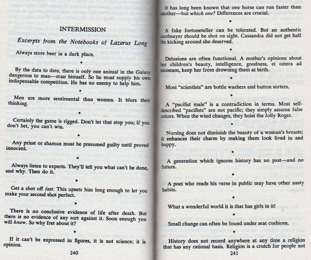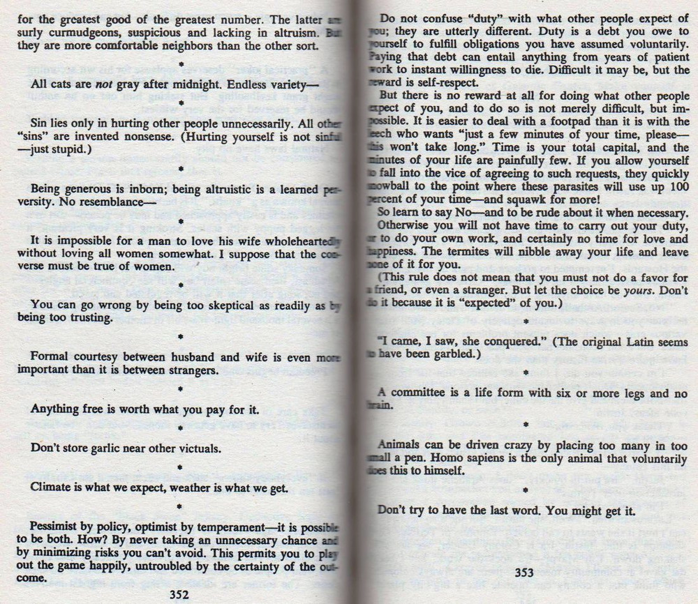 The wisdom of Heinlein. Part 2. All-new.I hope nobody agrees with his claim “Killing a pacifist should not be defined as murder in a legalistic sense”.