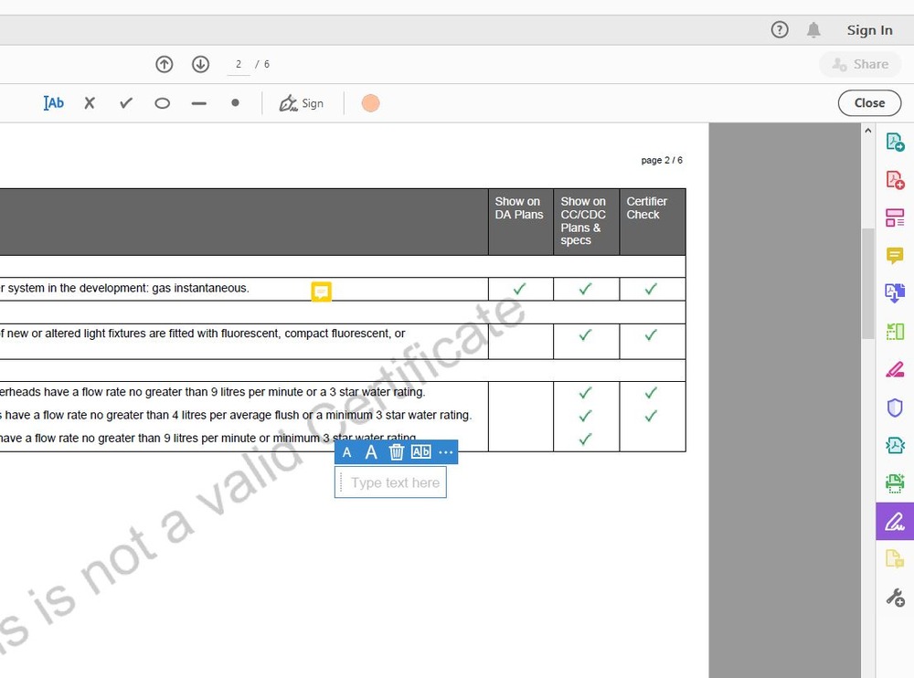 You’ll see a little menu at the top where you can select a text box or tick or cross etc.
