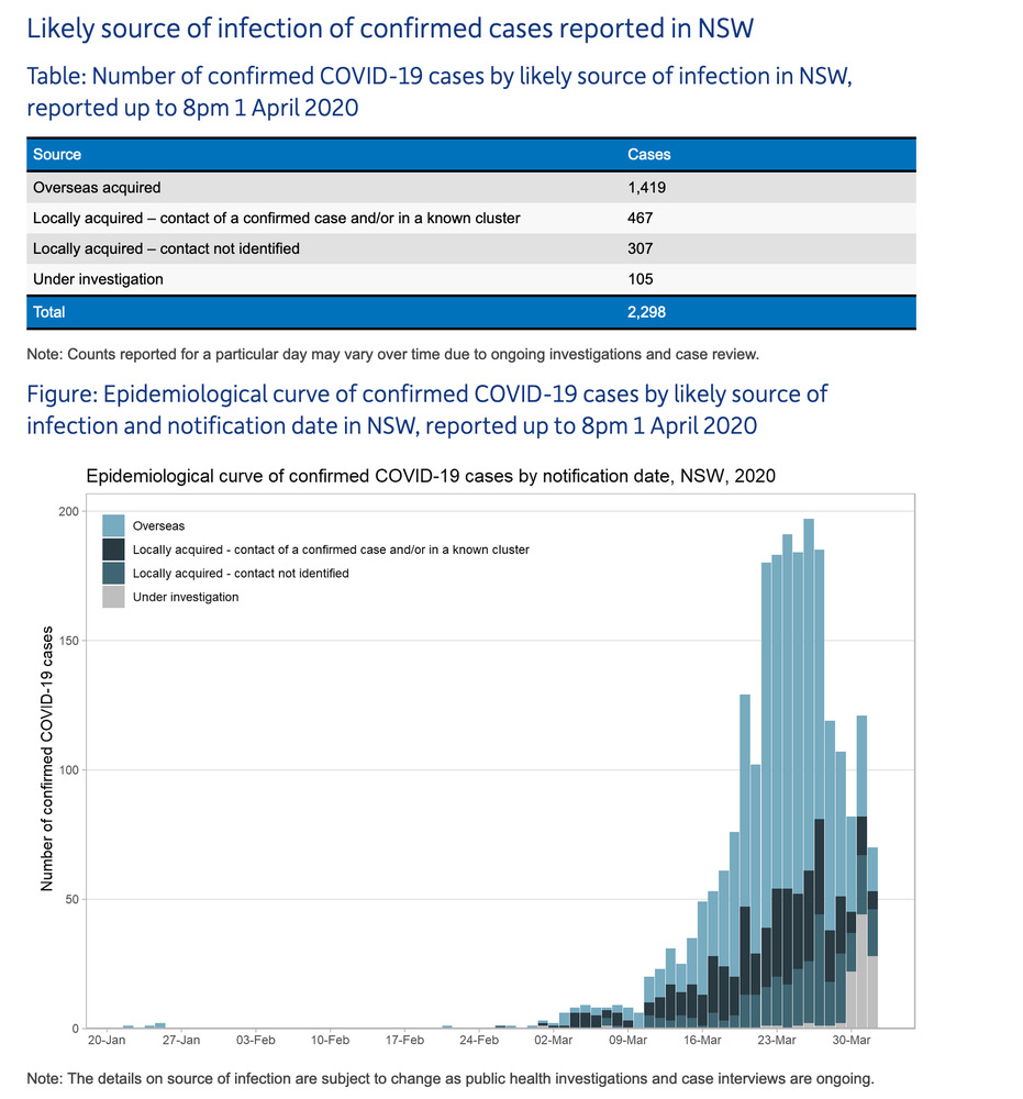 sorry if this has been said before, but this thread is now terribly unwieldy and impossible to read in total. But.. yes our rate of new cases is falling, but this could be a false dawn. Until recently most of our cases have been travel related. But for the the last few weeks we have been quarantining returned travellers, so the travel-related peak is now over. We can now expect to see an increase in cases due to community transmission – obviously now in the very early stages, but with the potential to exponentially increase. Having said that, we’ve had reasonably stringent social distancing in place for a few weeks now, there is some justification to hope for the best. The next couple of weeks are crucial. Fingers crossed.