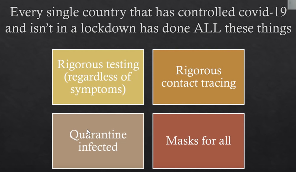 Though I think the point he was underlining was “So the social distancing is working, please keep it up folks”.