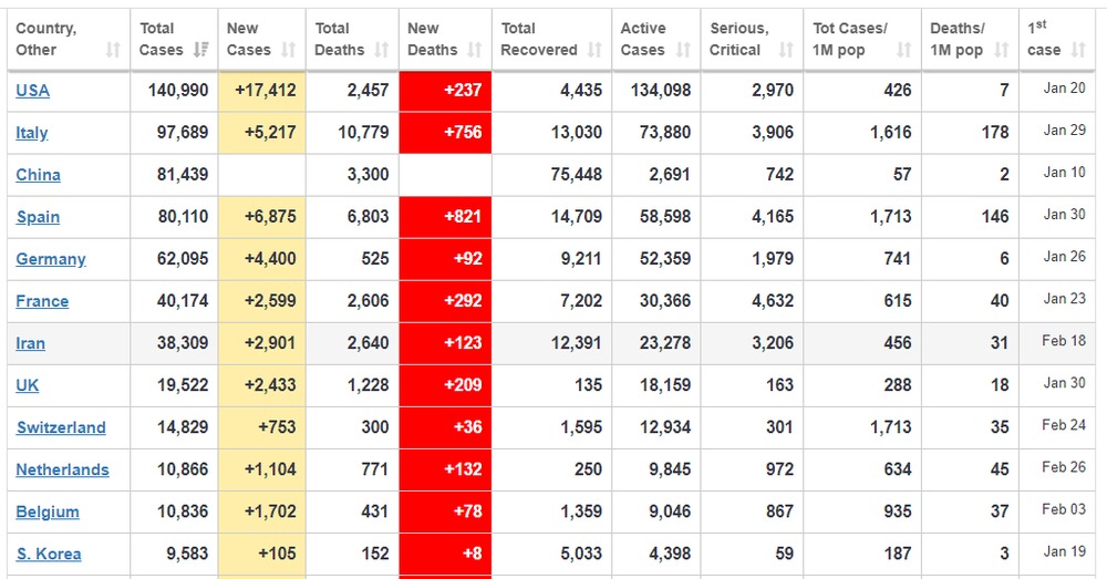 Yes. That is what all the self-isolation and social distancing is all about, to stop the secondary wave of community transmissions. Looking at the gross numbers doesn’t really tell the story, but so far I cam gleaning that there is a tipping point for community transmission, once it gets beyond that point it seems the genie is out of the bottle and number of cases shoots up rapidly. Some countries seem to have it under control, in other it seems to have escaped and is running rampant. Strangely enough it seems like the smaller and medium sizes countries are doing better at containing it than some of the larger countries.