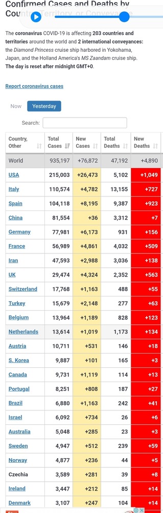 party_pants said:Things are going a little better than I was predicting earlier in the week. Based on extrapolating simple trends I had predicted that the USA would have 375,000 cases by now, but they’re well short of that. I was also thinking the UK would be over 50,000 but they’re under too.