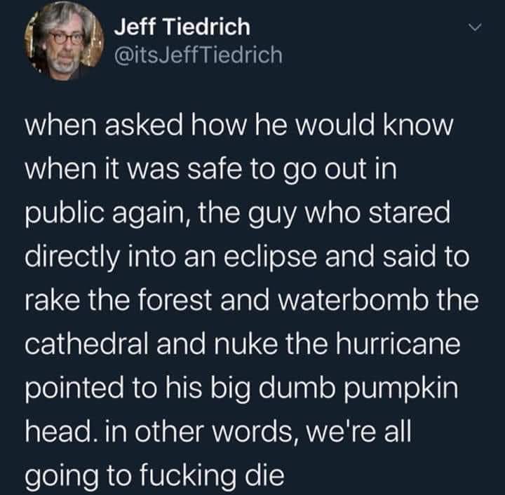 As things go the democrats as a whole are a danger to themselves giving people BAD advice. Whilst the infection rages in America the only thing Biden can come up with is “racism” , he wants to know stats on how many black people have died.