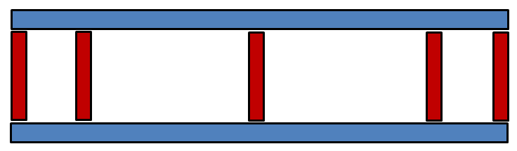 7 pieces of timber, 2 long and 5 short. Because the ends may have slight bevels, or there may be a bit of bowing or twist, the pieces aren’t identical.