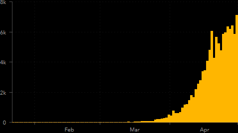 Crossed 200000 deaths overnight. The US will pass 1000000 cases Monday or Tuesday. 42% of active cases are in the US now.