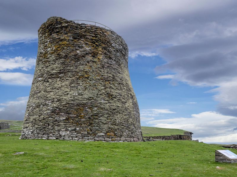 It is only to the north and west of Scotland, and predominant on Orkney, Shetland and the Western Isles, where stone was a more readily available building material than timber, that brochs are to be found. Huge windowless towers, ingeniously engineered, they represent the pinnacle of dry-stone wall building and remain one of the finest construction achievements of Iron Age Europe.