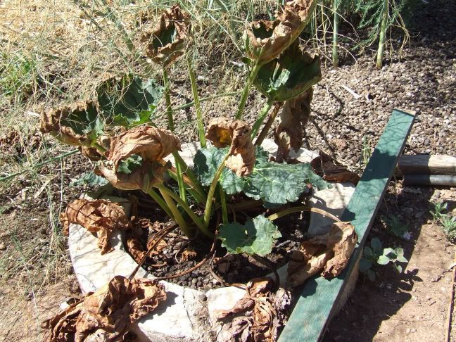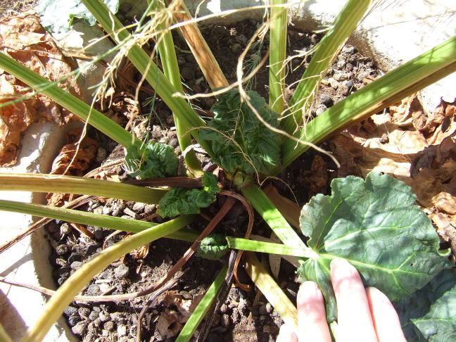 Anne its not in a pot. Its a couple of half cement rings around it and a bit up out of the actual soil. This is the only rhubarb out of 12 plants that has grown.