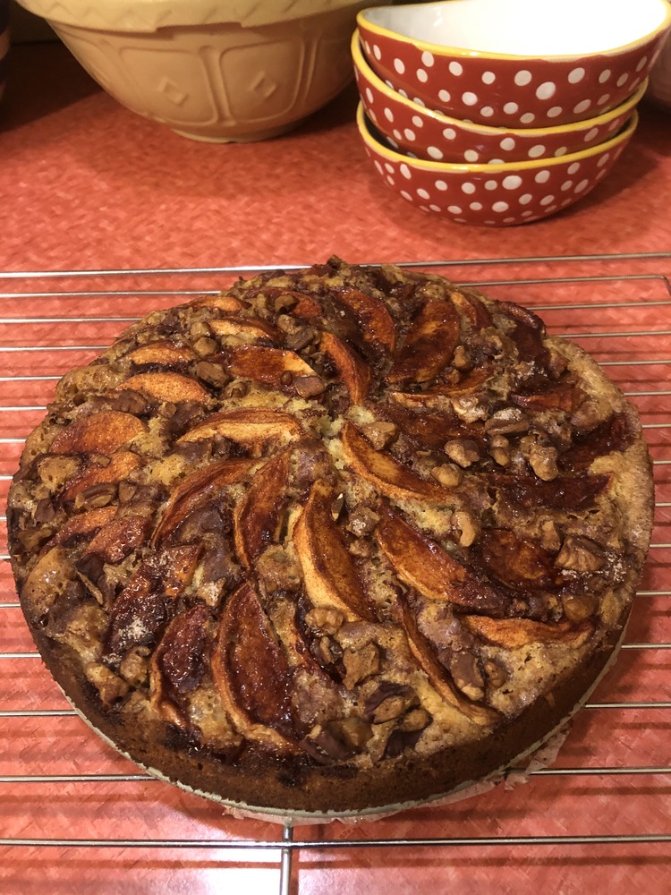The apple cake my nephew made my oldest sister for Mother’s Day.