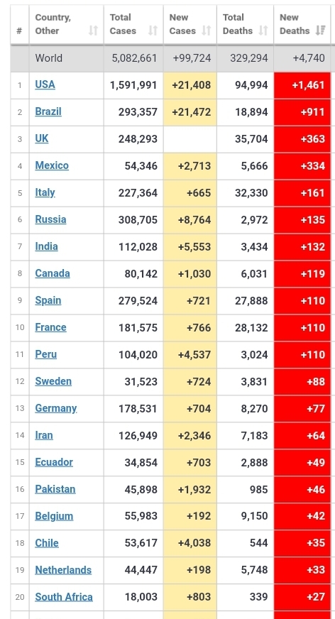 8th in the world for new cases, only slightly behind the UK in 7th place.