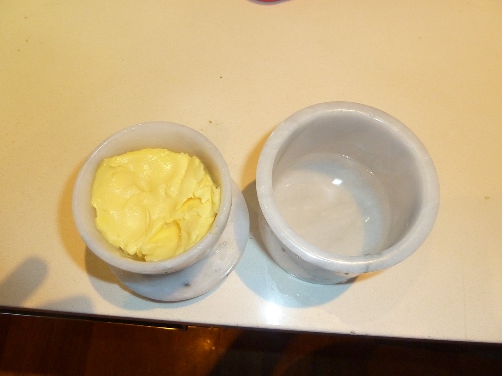 I was quite surprised that no-one else had ever come across this style of butter dish. It is actually well known as a French butter dish, but you can be nearly certain that the French nicked the idea from somewhere else and now claim it as their own, the cheese eating surrender monkeys!