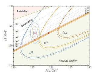 “The decay probability rate of the EW vacuum per unit time and unit volume can be calculated by semiclassical methods, it is basically …one gets for the decay rate the numerical estimate d p/(dV dt)∼h^4 exp(−2600/(|λ|/0.01)).”