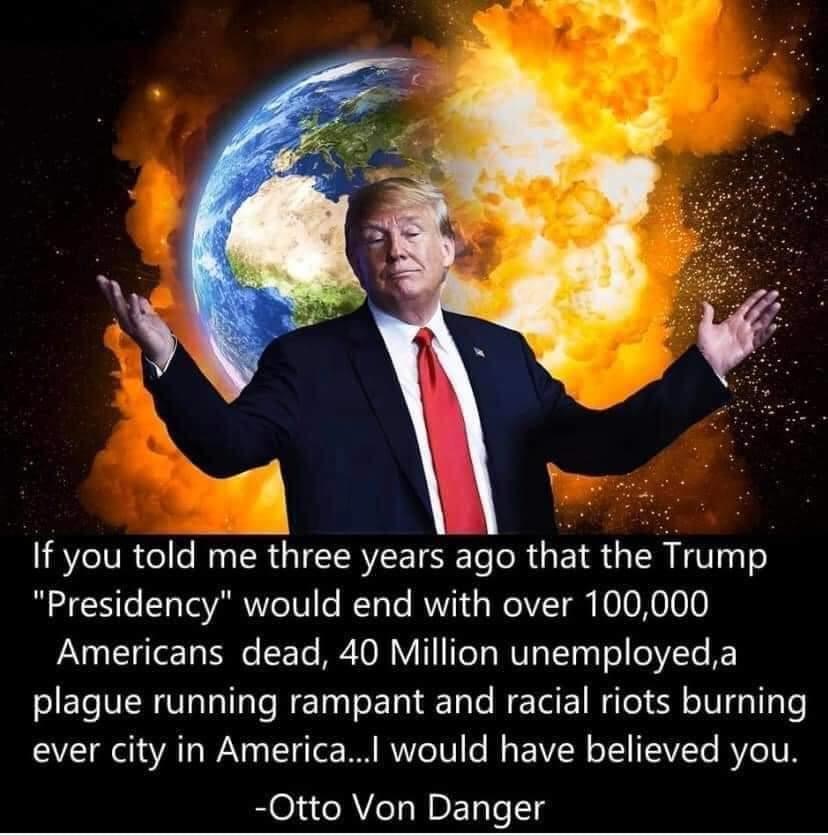 Actually, it started with a disease escaped from a lab and then riots. So, yeah, we’re well on our way to that…