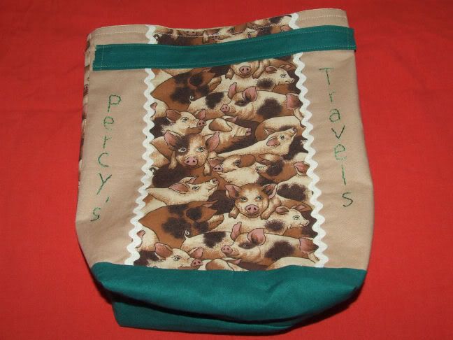 Next week the lad is off to sunny (or should that be soaked) Queensland. As Percy was sent some fan mail and inside was fabric and bag label, this afternoon I sent my time making him a travel bag.