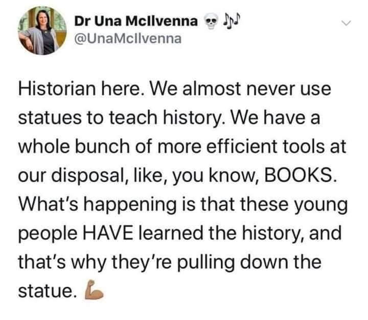 But it’s not, at least not in the current circumstances. Has there been a vote on whatshisnames statue being chucked into a river? Not that I’ve seen. It was mob rule deciding what was best.