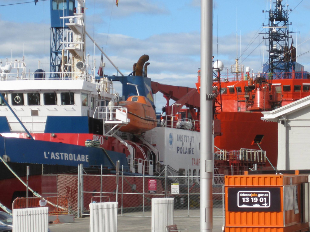 Aurora Australis and L’Astrolabe along side at IMAS. I shot these two legends of the frozen south enjoying a day in the sun in Hobart back in 2014. On our last trip, October last year, Aurora Australis looked like she hadn’t been touched since then, and was frankly in pretty shabby condition.